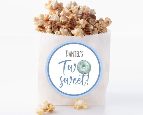 Two Sweet Blue Doughnut Style Birthday Party Stickers