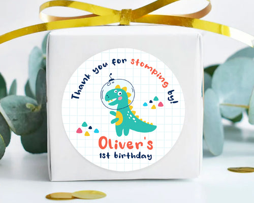Cute T-Rex Dinosaur "Thank you for stomping by" Kids Birthday Party Stickers