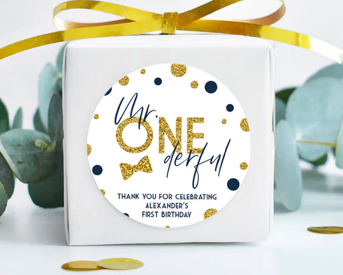 Mr ONEderful Gold Glitter Themed Boy Birthday Party Stickers