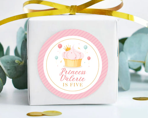 Princess Pink Cupcake Style Birthday Party Stickers Favour Stickers