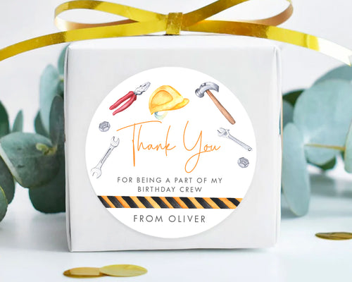 Watercolour Construction Handy Tools Style Birthday Party Stickers, Boy's Party Stickers